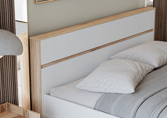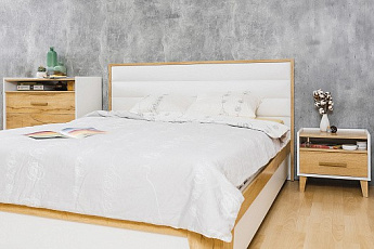Кровать Люкс Айрис 307 с ПМ (1600х2000) (Белый/Дуб золотистый), ГМФ