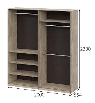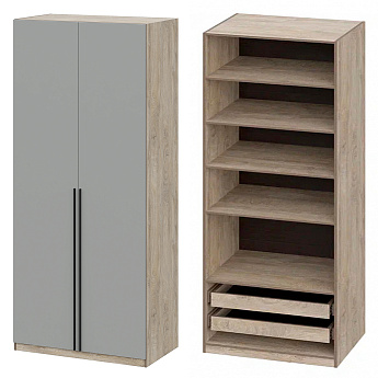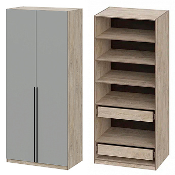 Шкаф Этна 57*200 (Софт грей/Дуб Эндгрейн), Компоновка 1