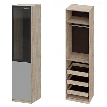 Шкаф Этна 57*50 (Софт Грей/Стекло/Дуб Эндгрейн), Компоновка 23