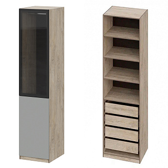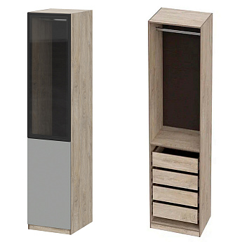 Шкаф Этна 57*50 (Софт Грей/Стекло/Дуб Эндгрейн), Компоновка 25
