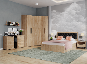 Шкаф 2-х дв с 2 штангами С21 Стоун (Золотой дуб/Графит), Модерн