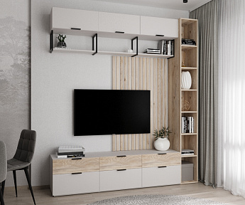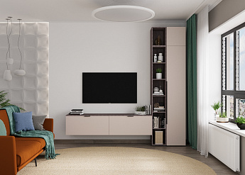 Тумба ТВ Бони-1 (Подвесная) (Велюр/Софт Латте), ALICIA