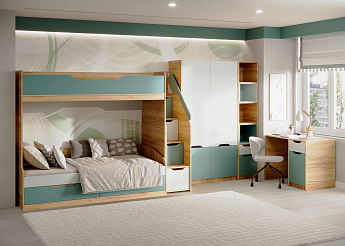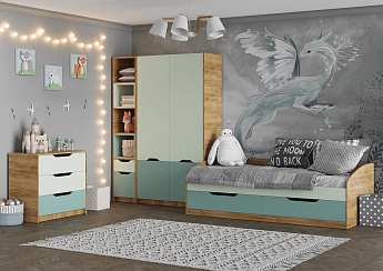 Стеллаж RICH СЖ-001 (Дуб Крафт золотой/Пастельный зеленый/Сумеречный голубой),