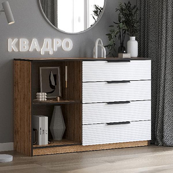 Комод комбинированый Квадро 1250 4ящ. (Дуб Вотан/Волна (Тальк)), Иж