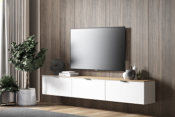 Тумба 2400 Осло NEW М23 (ручка торцевая)(Белый/Грей Софт), Риннэр