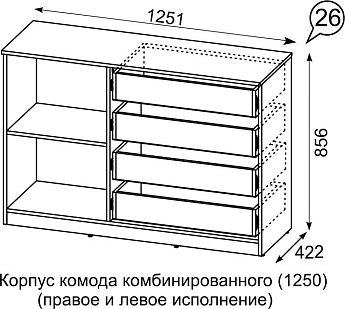 Комод комбинированый Квадро 1250 4ящ. (Белый/Ромб (Мартини)), Иж